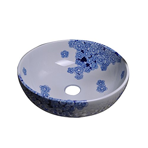 poshmark Dawn GVB87024 Ceramic, Hand-Painted Vessel Sink-Round Shape, Blue and White